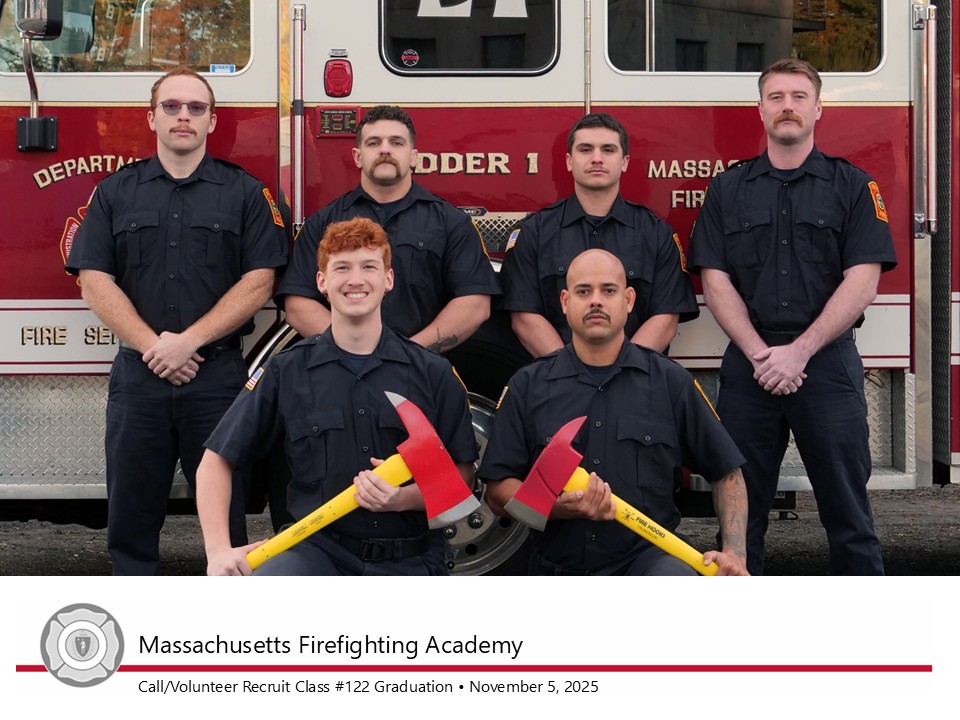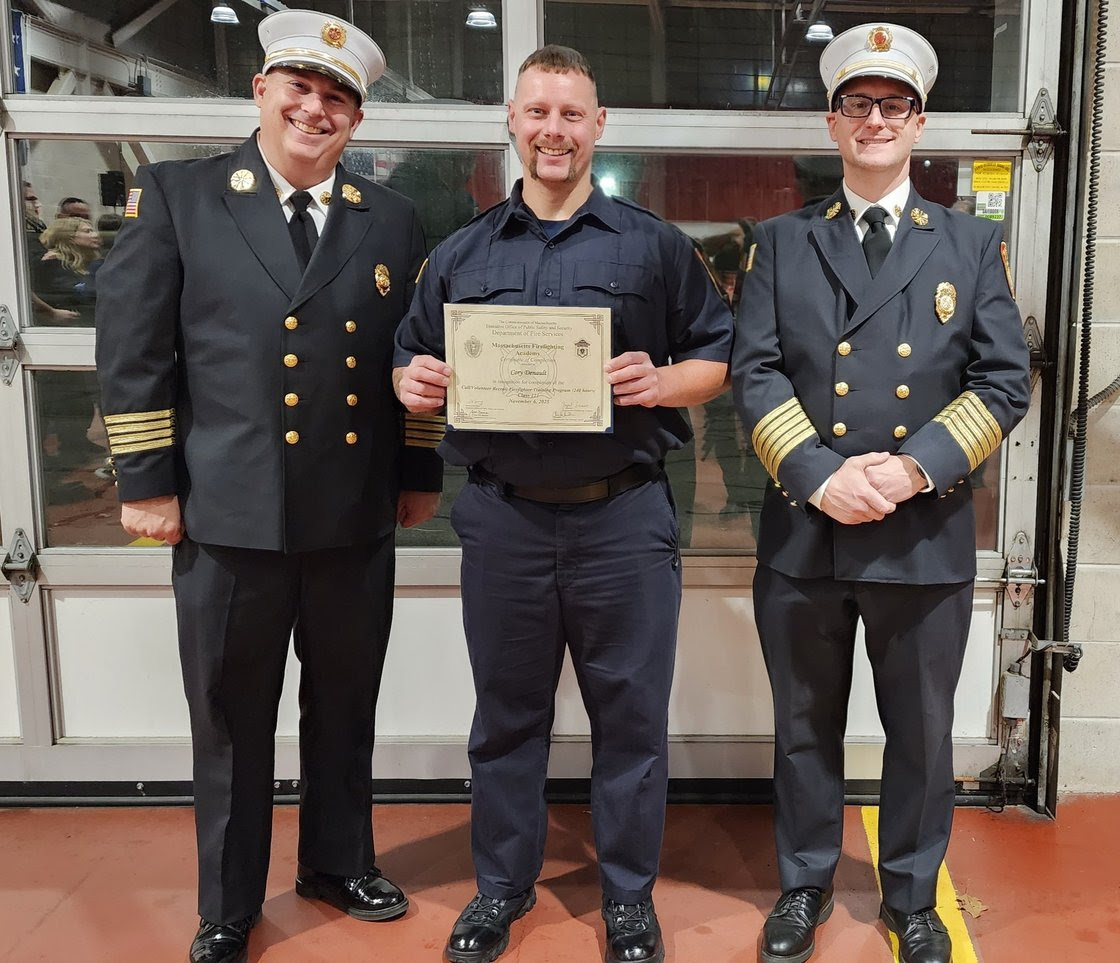 Blackstone Firefighter Cory Denault recently graduated from the Massachusetts Firefighting Academy’s Call/Volunteer Firefighter Recruit Training…