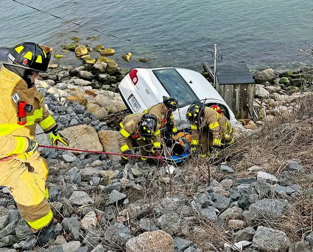 Plymouth Fire Department Rescues Driver from Vehicle that Drove Off Steep Embankment on Manomet Point Road