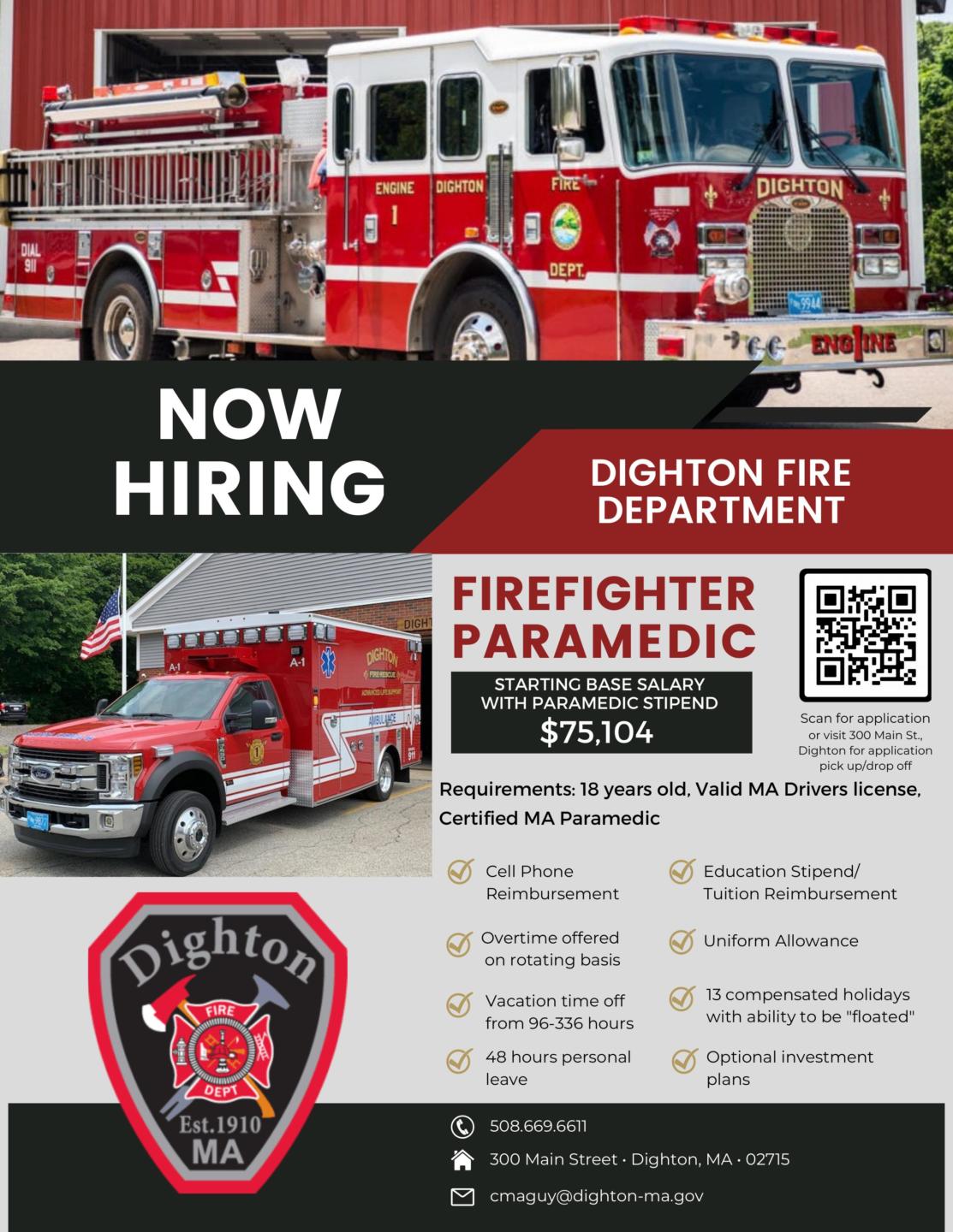 DIGHTON — Chief Christopher Maguy announces that the Dighton Fire Department is seeking qualified candidates for…