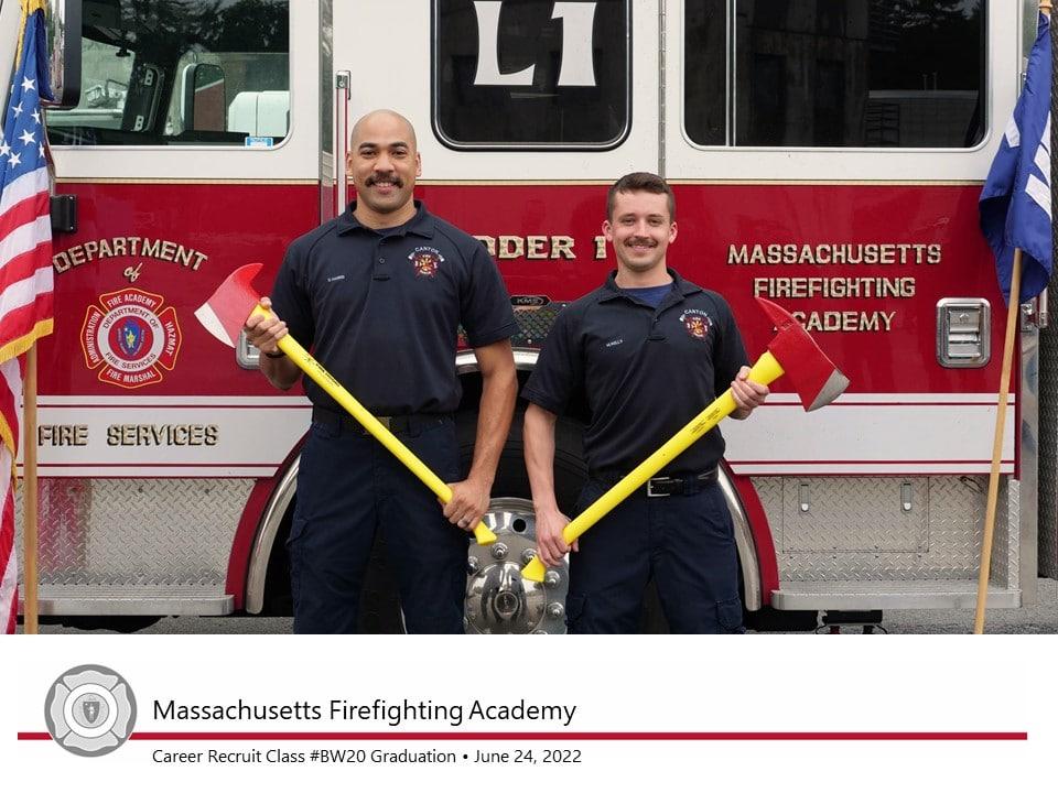CANTON — Chief Charles Doody is pleased to announce that two firefighters graduated from the Massachusetts Firefighting…
