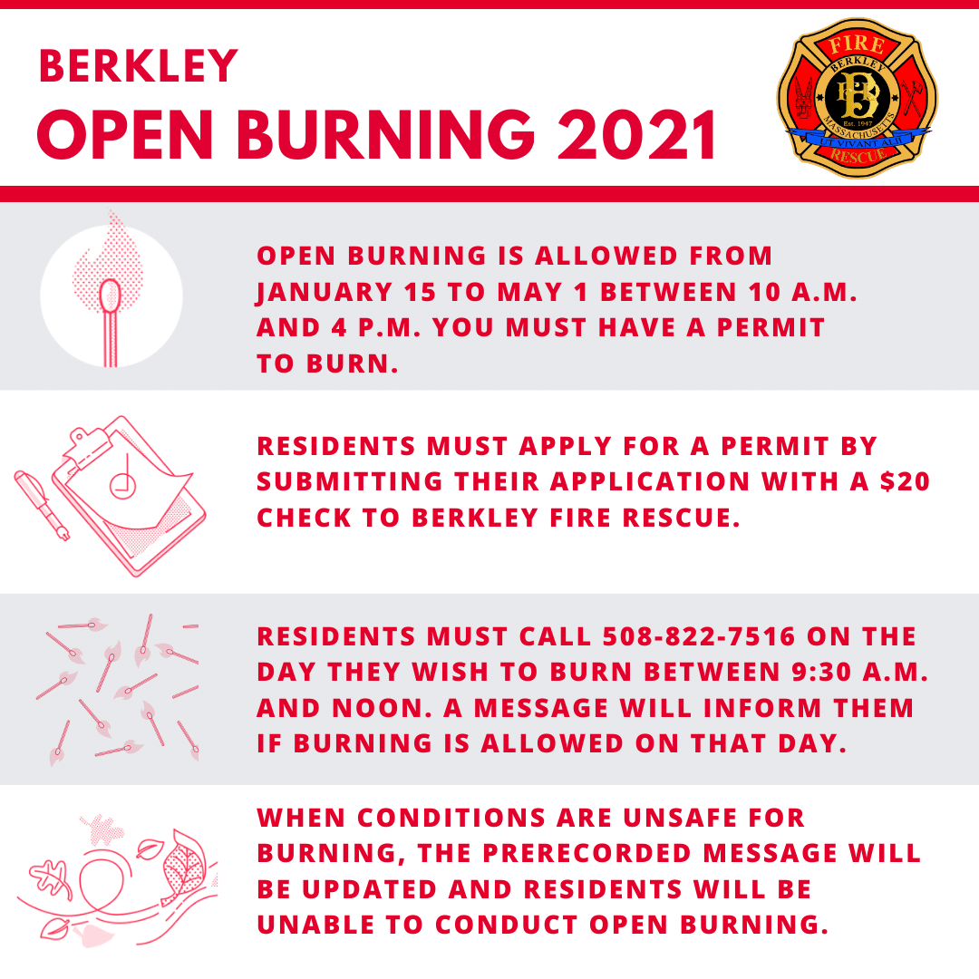 BERKLEY — Chief Scott Fournier and Berkley Fire Rescue wish to remind residents that open…