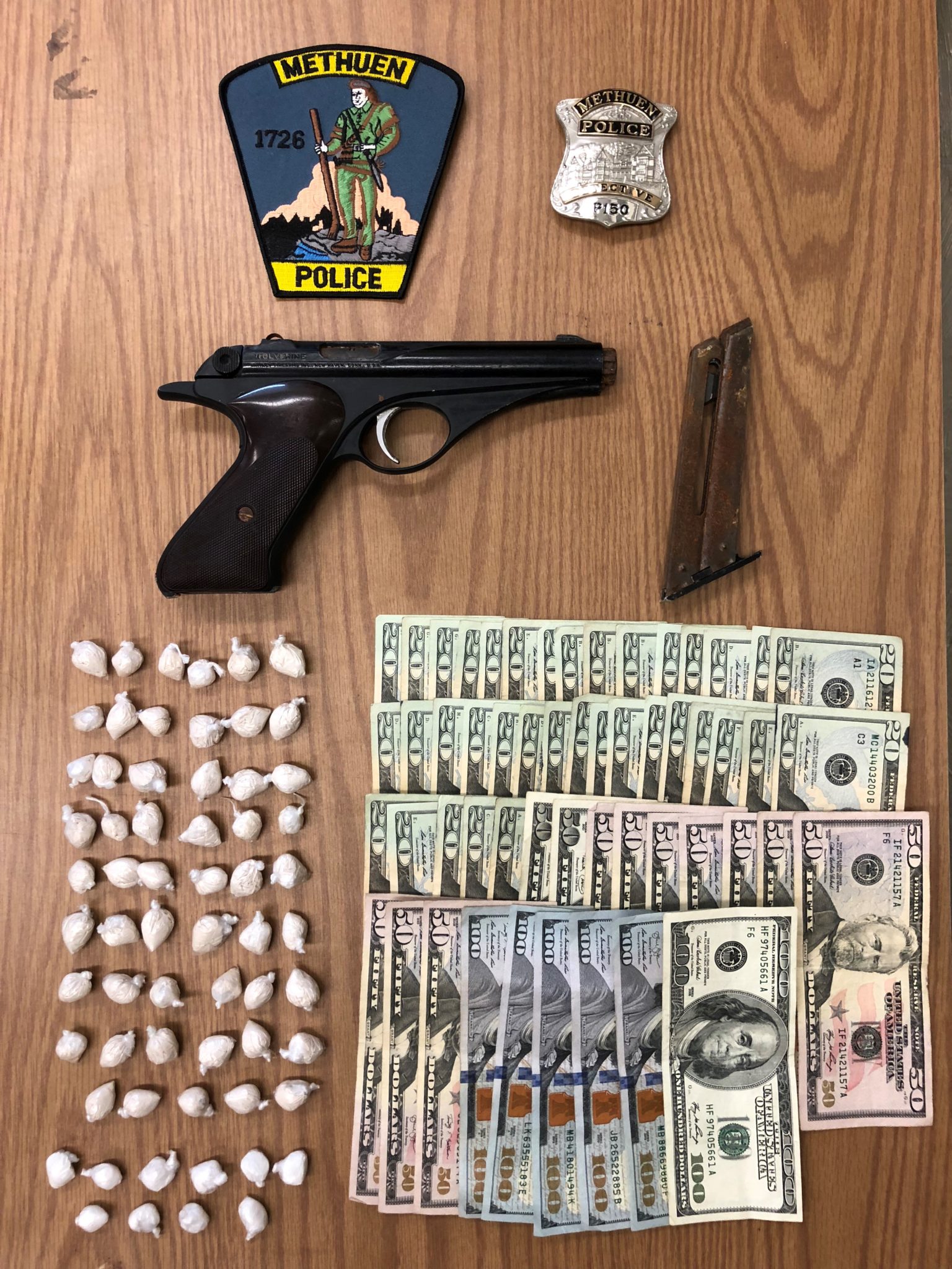 The Methuen Police Department arrested a man and woman on drugs and weapon charges today.