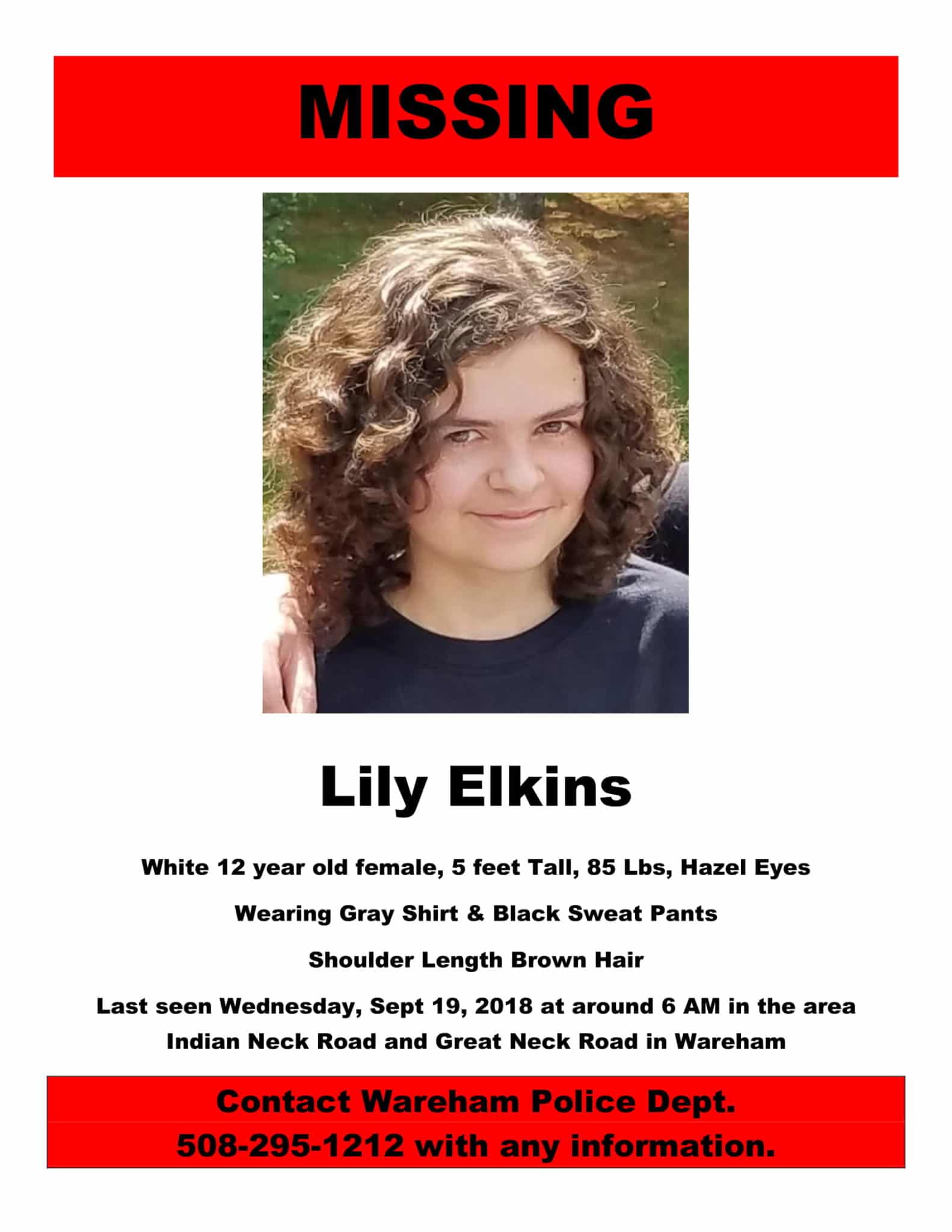 Wareham Police Department Searching for Missing 12-Year-Old Girl