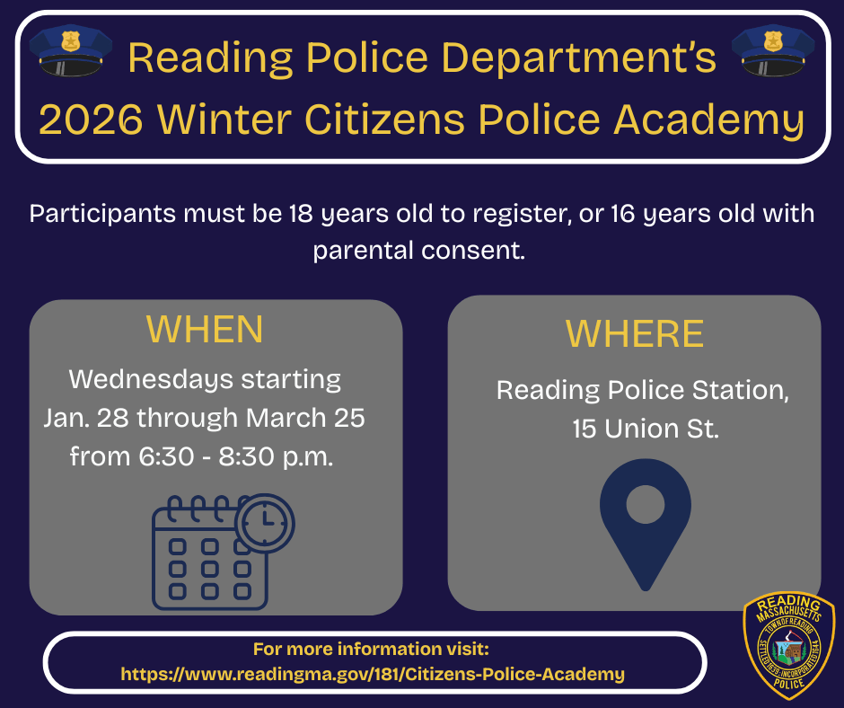READING — Chief David Clark has announced that the Reading Police Department is hosting its Winter…