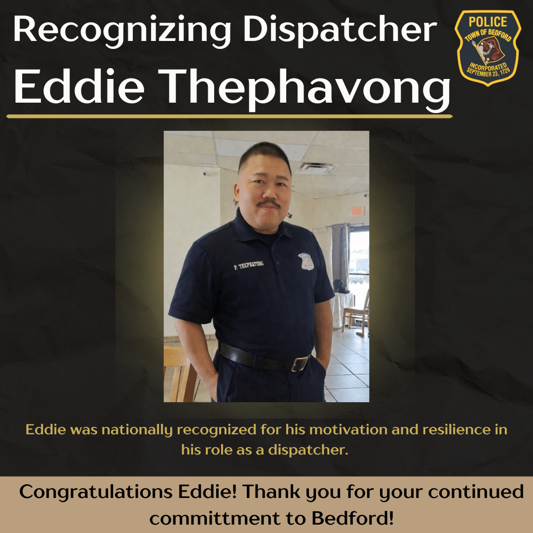 BEDFORD — Police Chief Ken Fong is pleased to share that dispatcher Eddie Thephavong has…