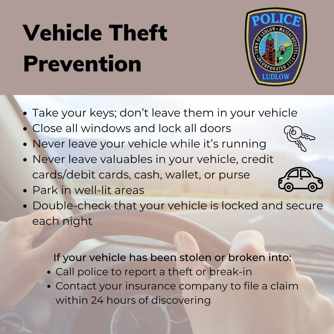 Ludlow Police Encourage Community to Take Steps to Protect Property, Prevent Motor Vehicle Break-Ins