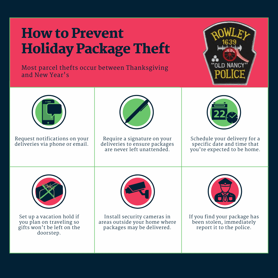 ROWLEY –With the holiday season fast approaching and more people shopping for gifts, Chief Scott…