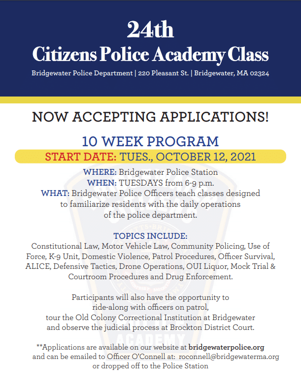 BRIDGEWATER — Chief Christopher D. Delmonte and the Bridgewater Police Department are pleased to share…