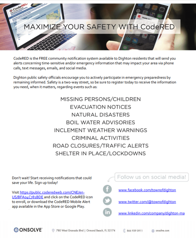 DIGHTON — Chief Robert MacDonald and the Dighton Police Department would like to encourage residents…