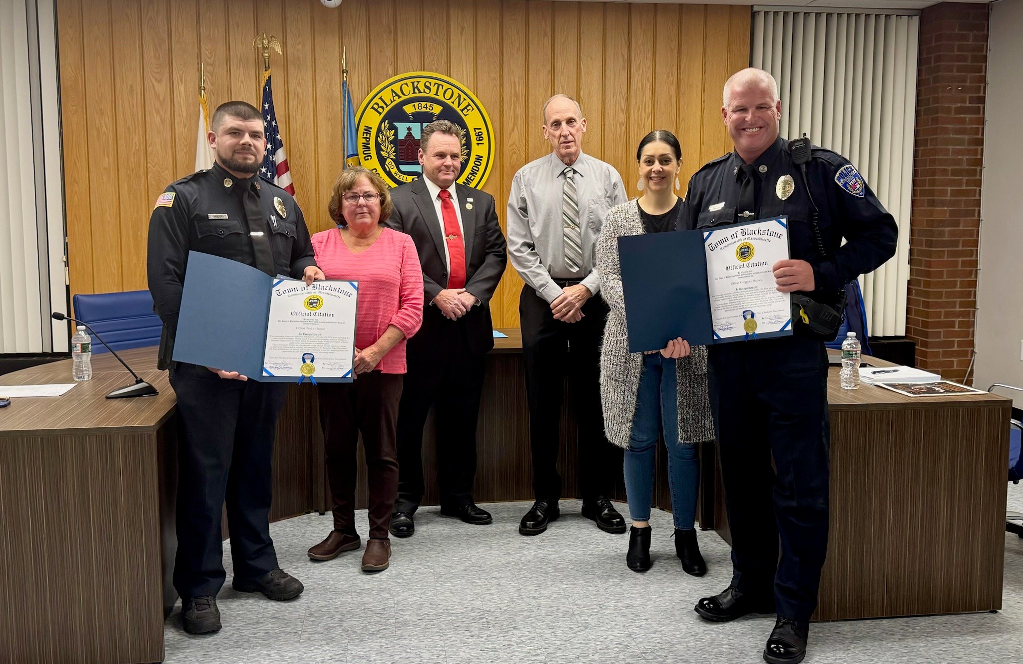 BLACKSTONE — Police Chief Gregory Gilmore is pleased to report that two Blackstone Police officers…