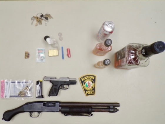 Marion Police recovered two firearms, ammunition, and cocaine during an OUI investigation on Saturday. (Photo…