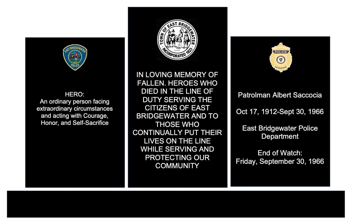 The Albert Saccocia Memorial will be erected outside Town Hall, adjacent to the East Bridgewater…