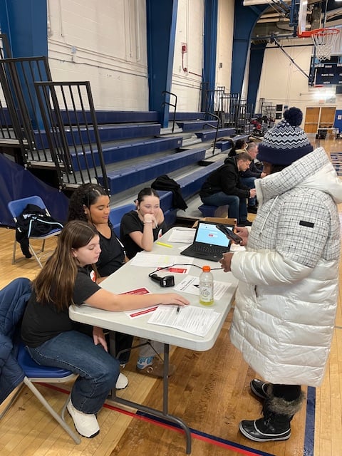 Blake students greet donors at the check-in table, where they fill out the paperwork necessary…
