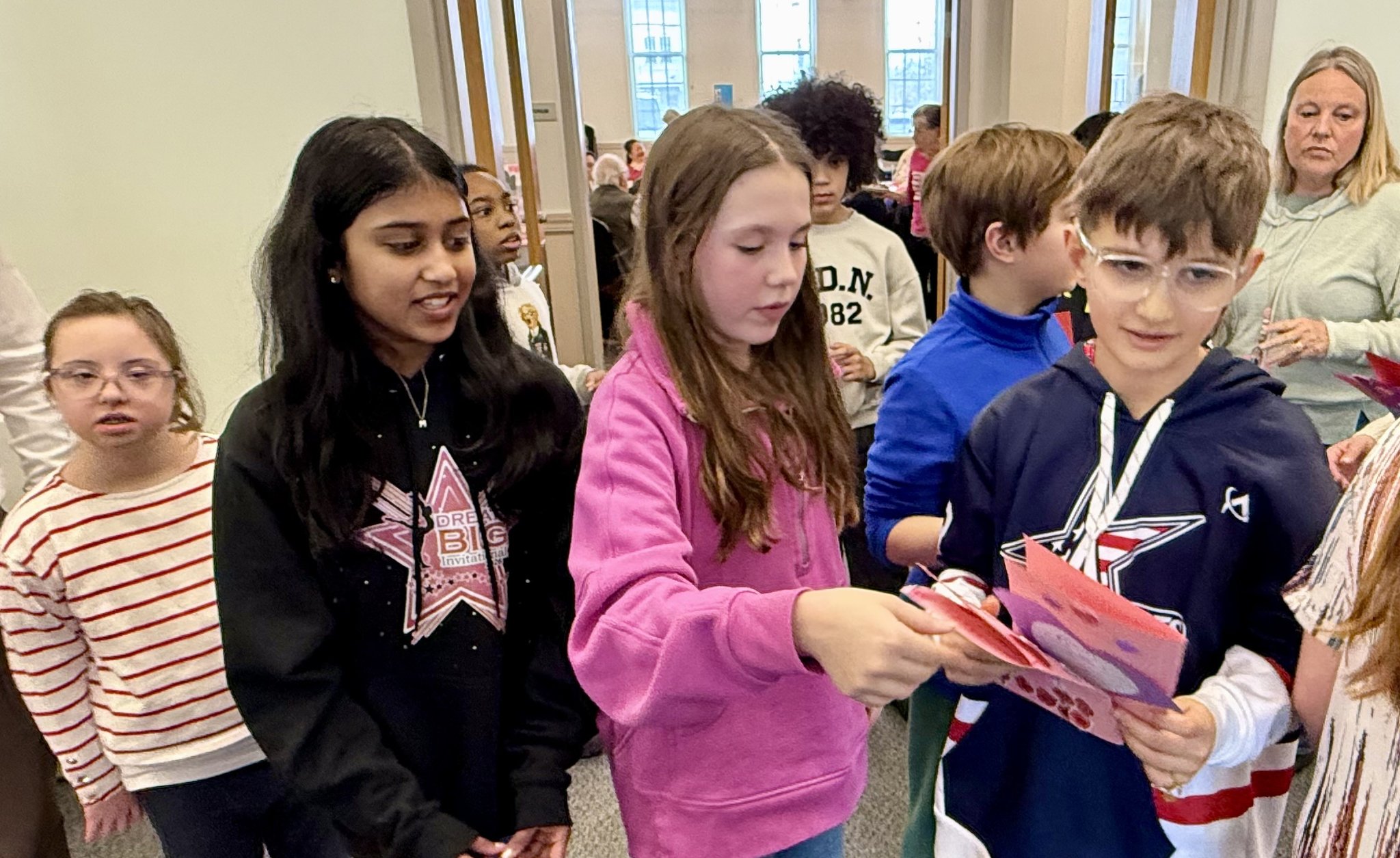 Students from the Thoreau Elementary School Fifth Grade Student Council organize handmade valentines to deliver…