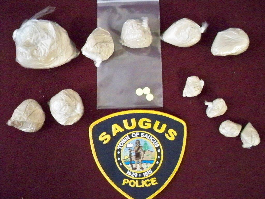 The Saugus Police Department arrested a man on multiple charges, including heroin trafficking, yesterday.