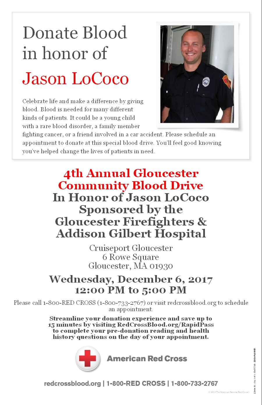 Gloucester Fire Department to Host 4th Annual Blood Drive in Honor of Local Firefighter