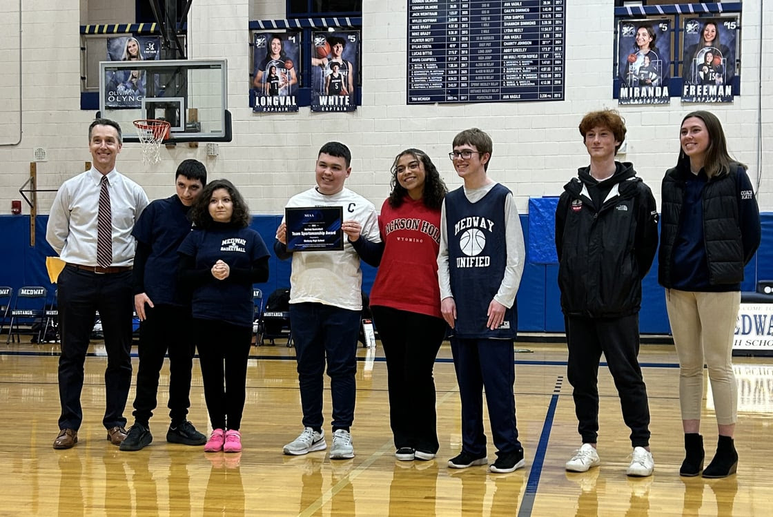 The Medway High School Unified Basketball team, including Coach Katy Golden, right, recently received the…