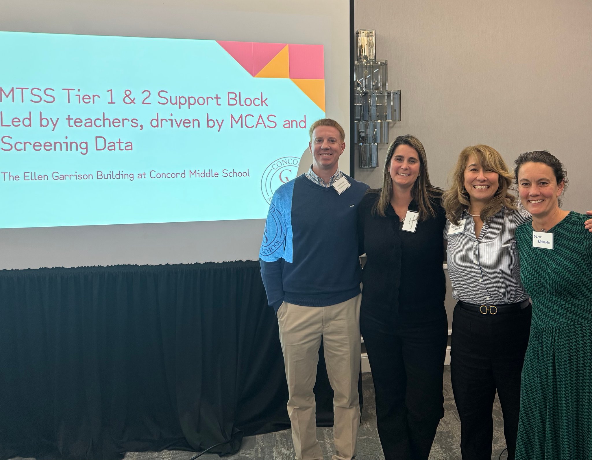 From left, Concord Middle School Principal Justin Cameron, English Department Chair Jen Coty, 8th Grade…